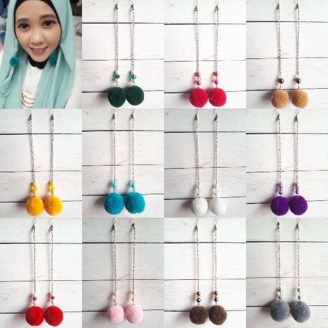 Anting Hijab Earing Pompom Pom Pom 3cm Shopee Indonesia