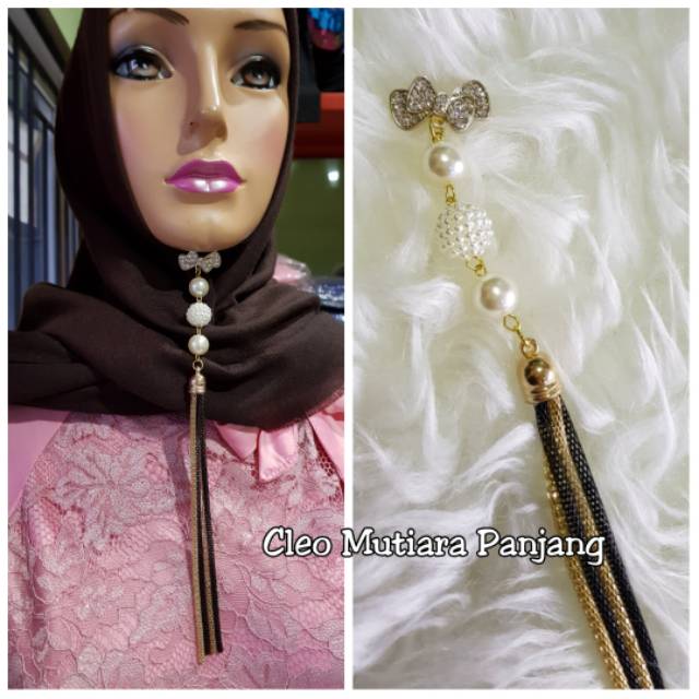 Bros Dagu Cleo Mutiara Panjang Cantik Aksesoris Jilbab Segiempat